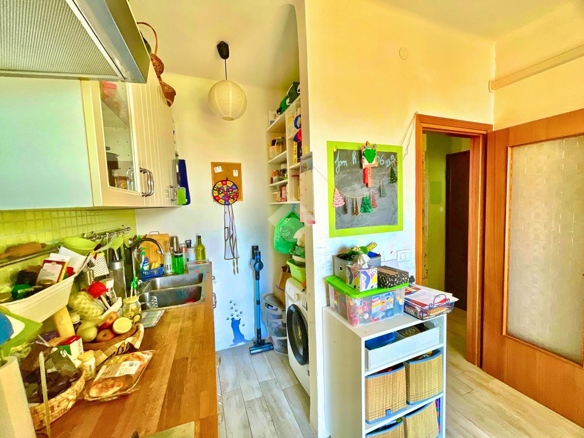 L'appartamento è composto da: cucina abitabile con accesso al balcone, camera da letto matrimoniale, camera singola, bagno finestrato,ripostiglio, cantina, porta blindata e condizionatore.