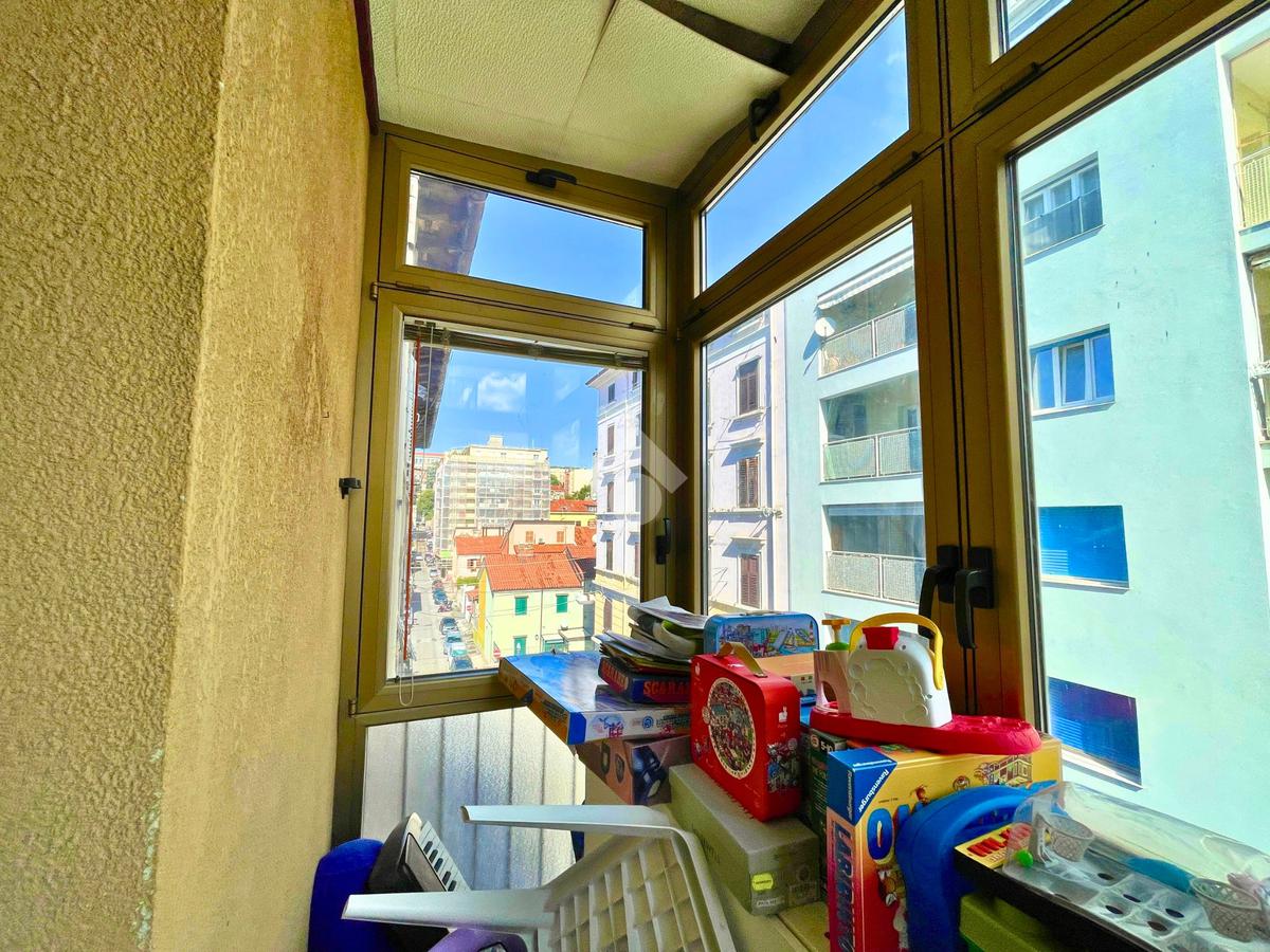 Proponiamo in vendita un trilocale sito al piano alto in uno stabile signorile con vista mare.
