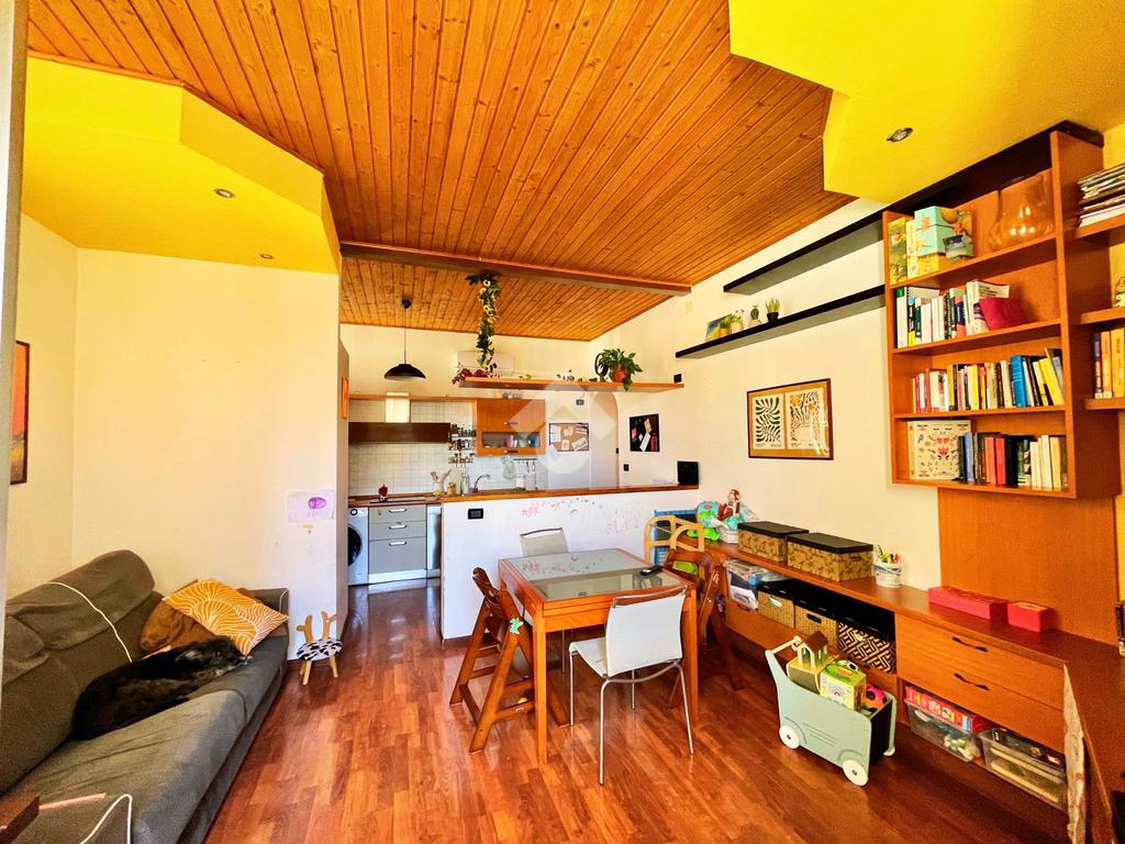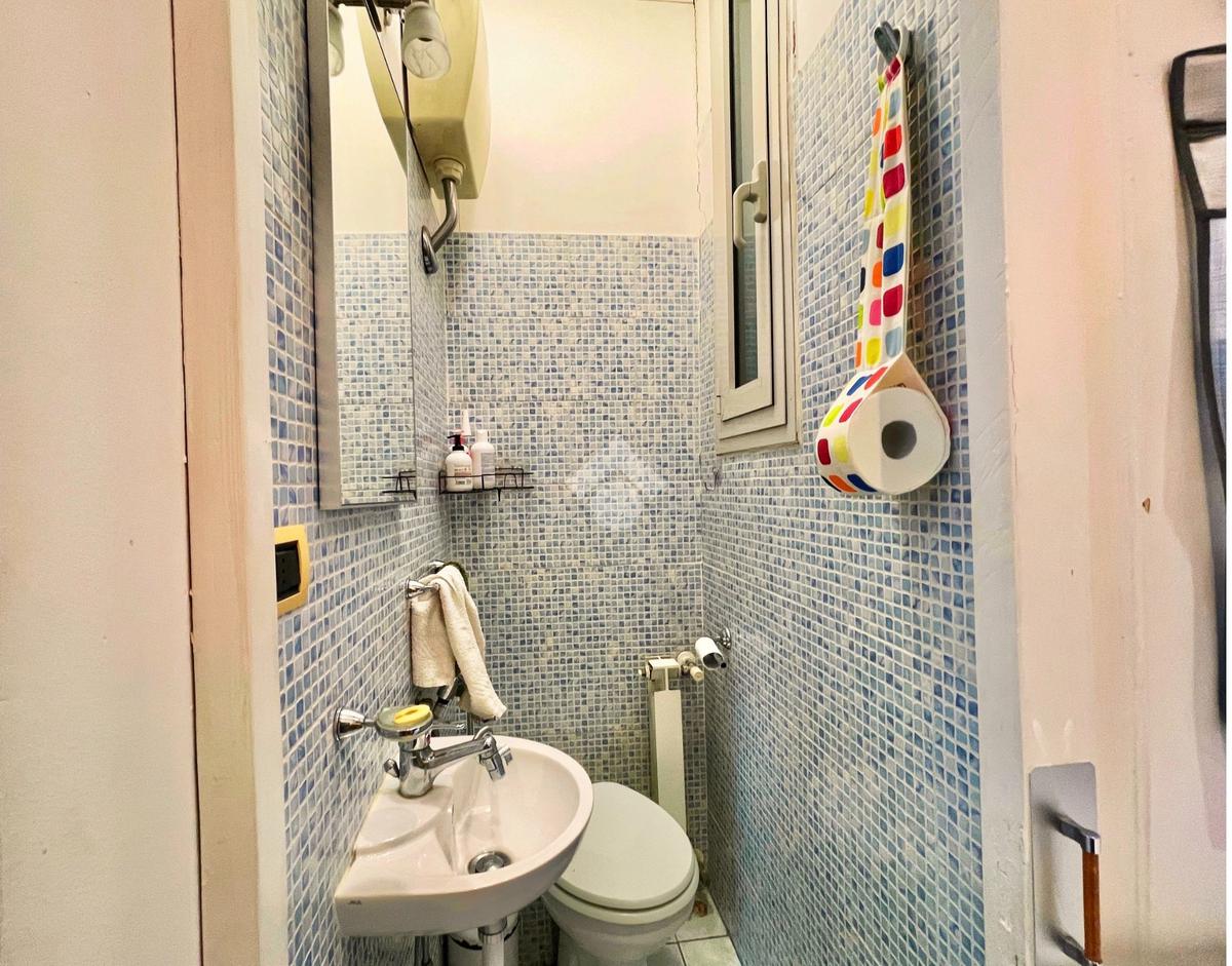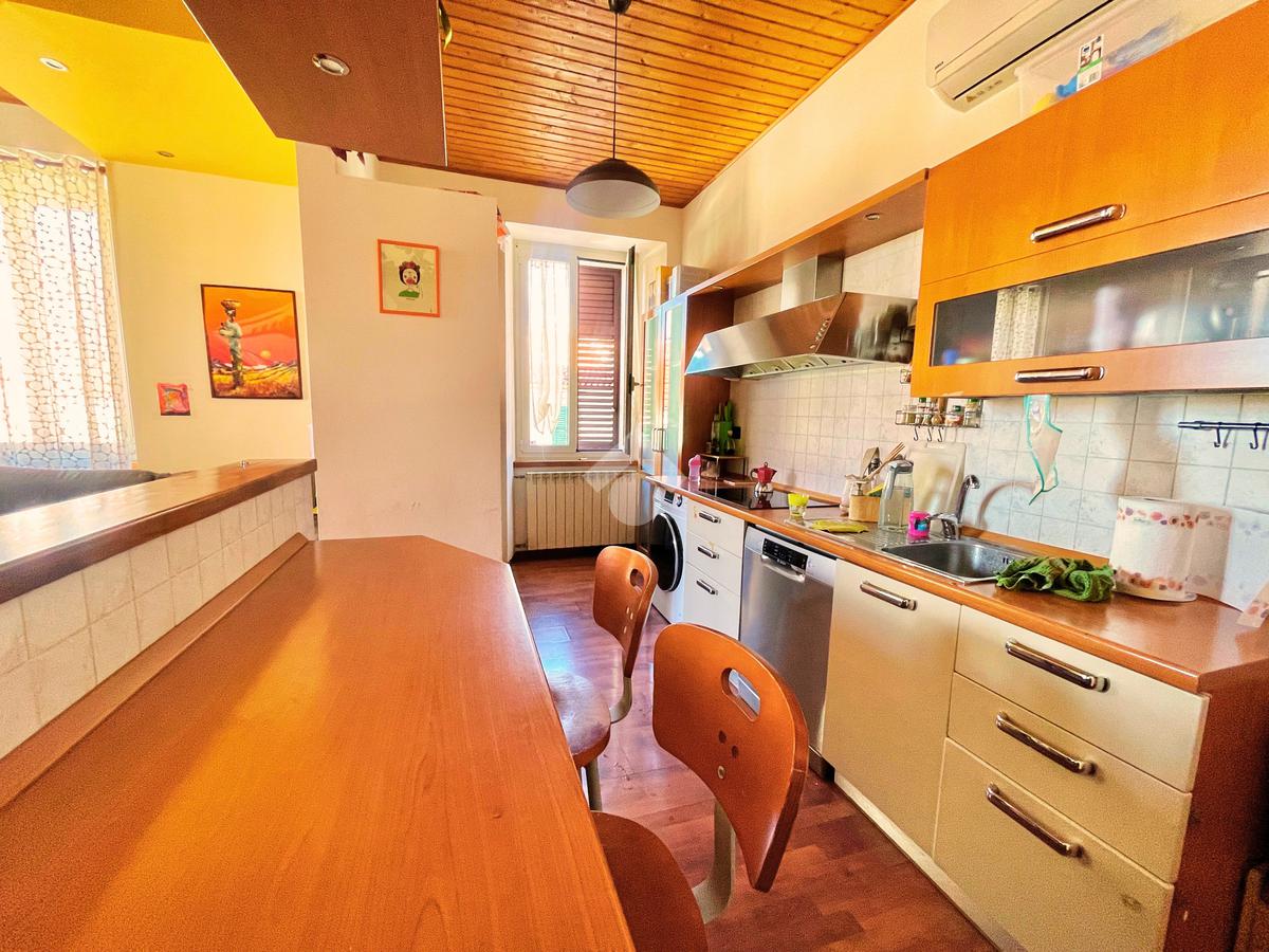 PRIMO PIANO - ampio soggiorno con doppia finestra e cucina a vista con penisola, bagno finestrato e ripostiglio.