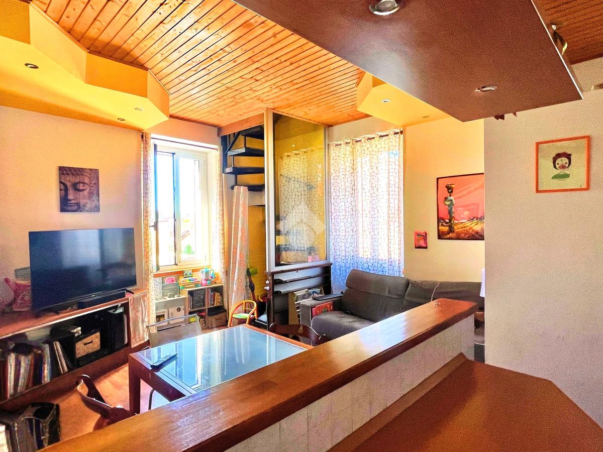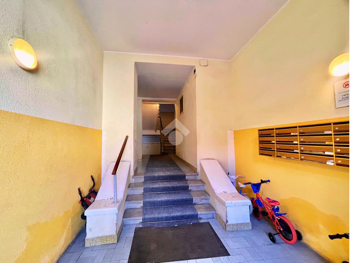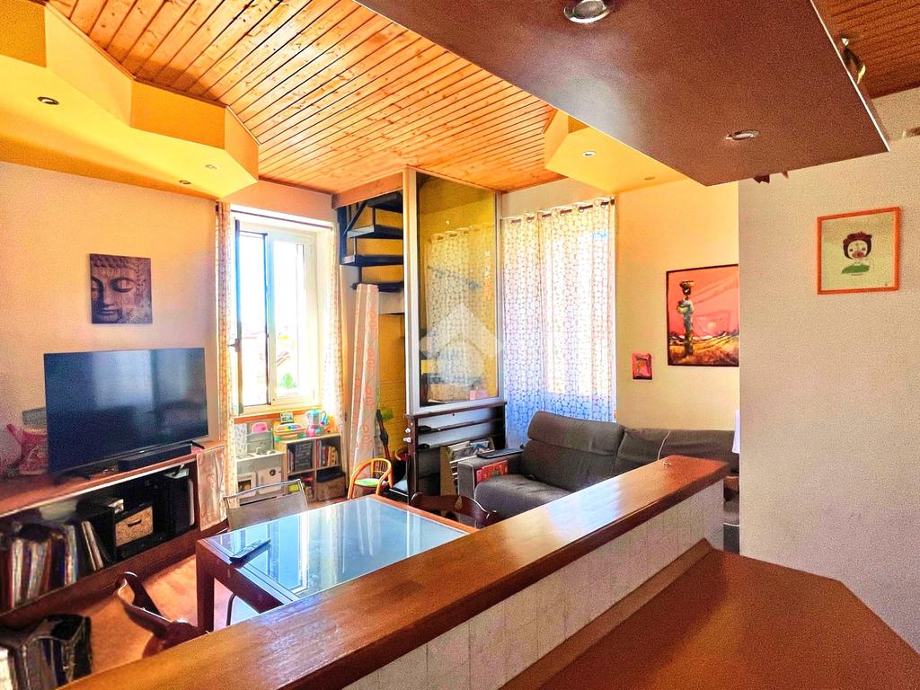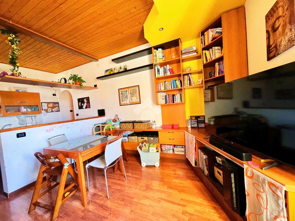 PRIMO PIANO - ampio soggiorno con doppia finestra e cucina a vista con penisola, bagno finestrato e ripostiglio.